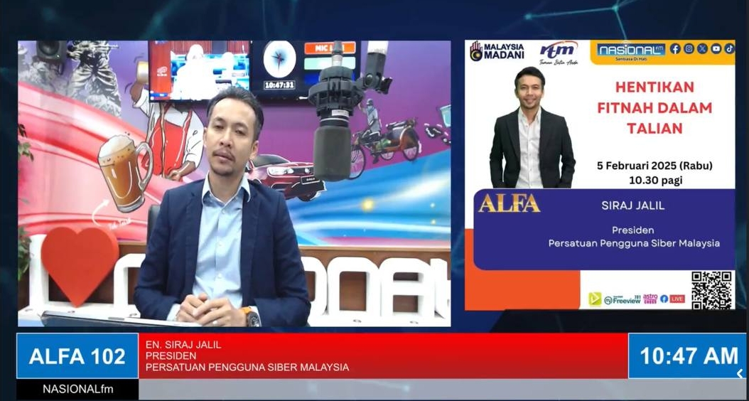 Pada 7 Mei 2025, Presiden Persatuan Pengguna Siber Malaysia (MCCA), Tuan Siraj Jalil, telah dijemput ke program bual bicara pagi TV3, Malaysia Hari Ini (MHI), bagi membincangkan isu penting berkaitan ...