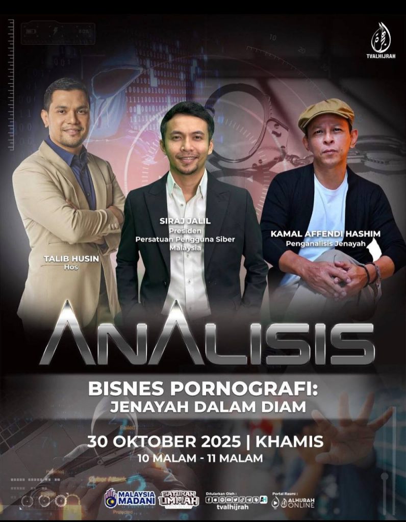 30 Oktober 2025 — Presiden Persatuan Pengguna Siber Malaysia (MCCA), Siraj Jalil, telah diundang sebagai panel utama dalam rancangan ANALISIS terbitan TV AlHijrah bagi membincangkan topik sensitif namun semakin meruncing: